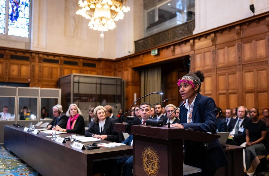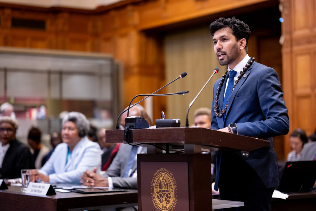When the hearings opened at the International Court of Justice, Houniuhi and Prasad both addressed the judges: the first time Pacific youth had spoken directly to the ICJ. Houniuhi delivered a six-minute opening statement in both her native language and in English, moving the Court with the power of her words. She drew inspiration from her grandmother, who had reminded her: “You see the islands — that’s ours.” Those words, she later said, gave her strength to speak not only for herself, but for generations past and future.
