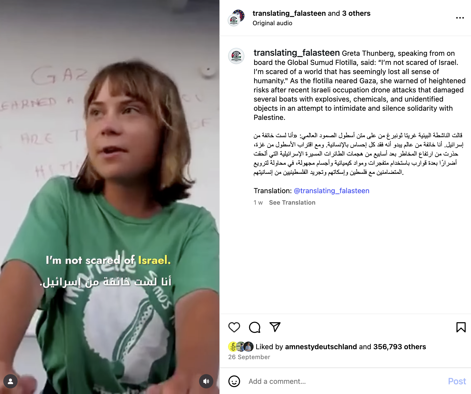 “The international community must act decisively and demand that Israel uphold international human rights and humanitarian law. Thunberg’s detention is not merely an act against one individual, but an assault on the right to peaceful protest, humanitarian aid, and the essential solidarity that connects us as human beings across nations. The world will not stand idle while blockade, forced detention and genocide persist.”